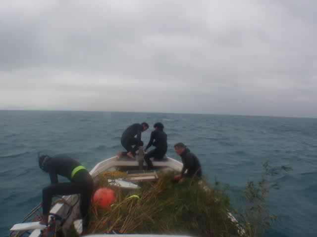 斜めった漁礁を眺めながら、スタッフみんなの目が~(・・?))(((;・・)?少し変じゃない!?