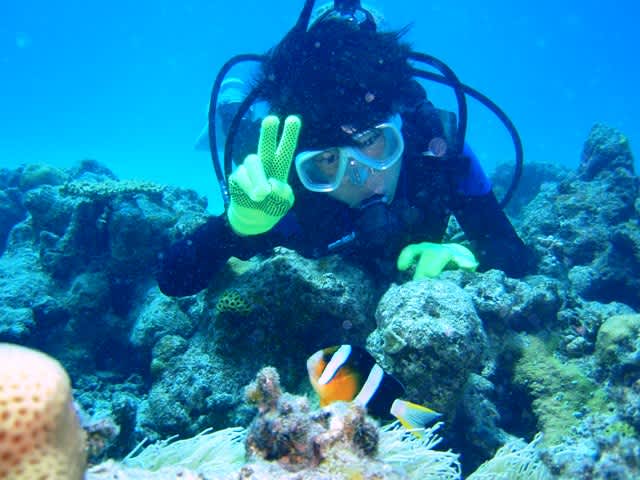 クマノミやハマクマノミ、スカシテンジクダイなどが迎えてくれました(^_-)