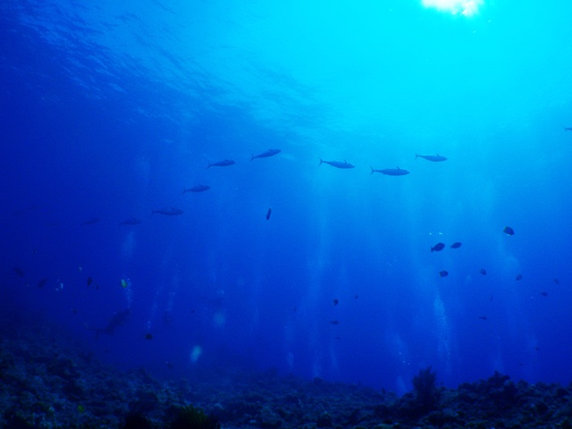 トカキンの根ではグルクンもいっぱいに群れてて、