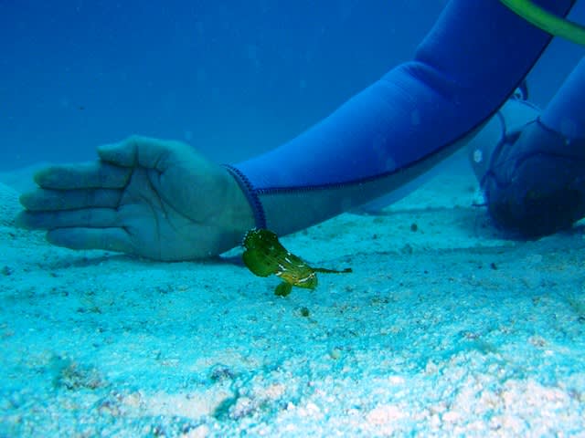 なんと、スノーケルでイソマグロを見ようという、大胆な試み(^_^;)