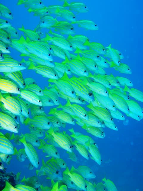 ちょーっと透明度はイマイチでしたが、かなり近くでチビマグロが