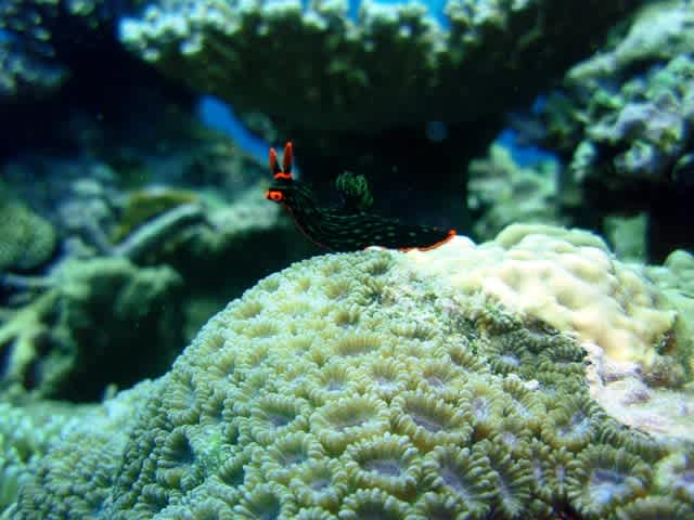 小さな可愛いオレンジウミコチョウも発見です!!岩の壁にはロクセンスズメダイの