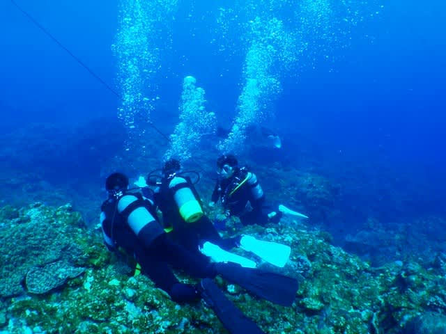 下へ降りる体験チーム♪  こっちへ向ってくマンタ♪