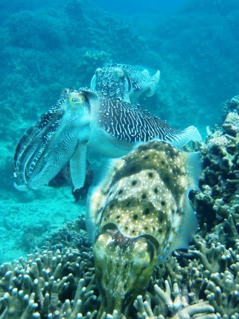 今日もたくさんのコブシメ達が、メスをめぐっての争い、