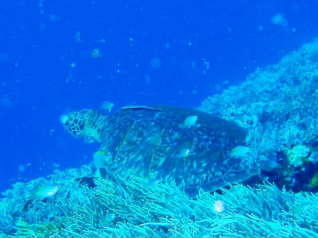 今日も大きいカメがソフトコーラルの上でお昼寝中のところをおじゃまして、
