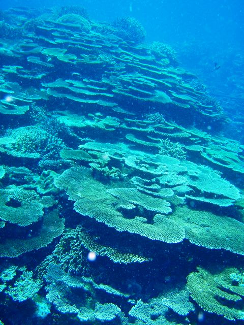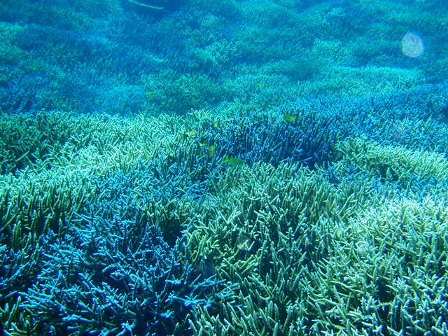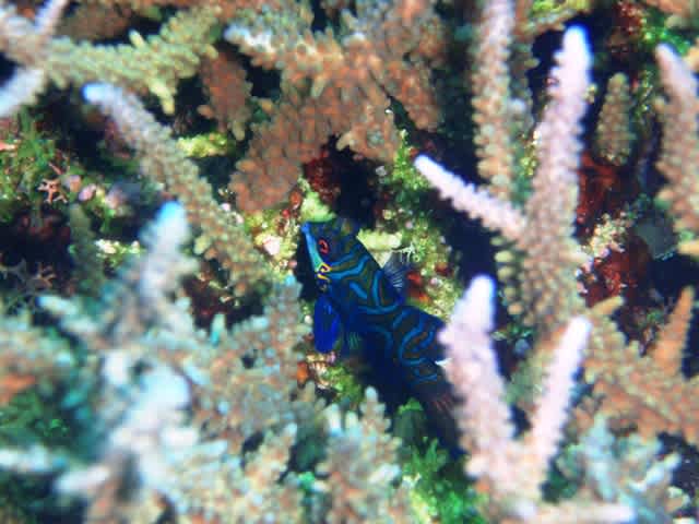 水中では、キレイなデバスズメダイやエダサンゴ