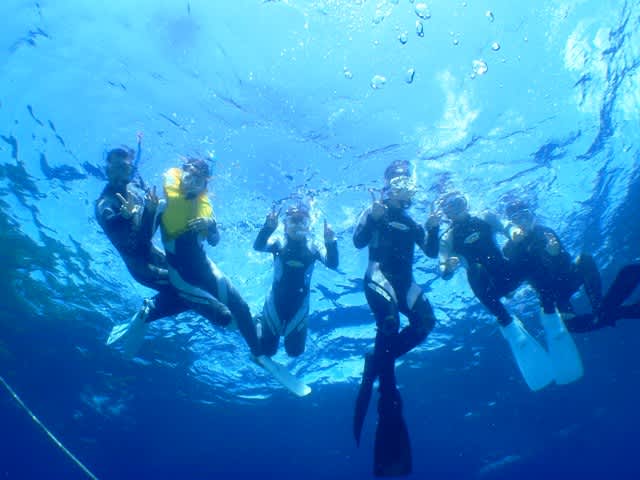 そんな天気に恵まれた皆さん、今日は体験チーム7名・スノーケルチーム3名の