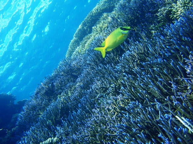 浅い所のサンゴは太陽の光を浴びて、とってもイキイキ元気です(^_^)v