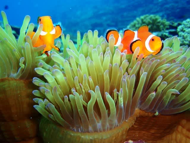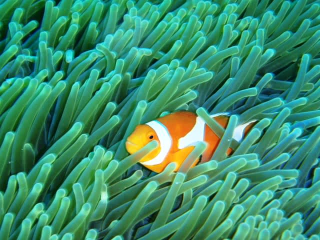 水中ではカクレクマノミを初め、イソギンチャクモエビなど