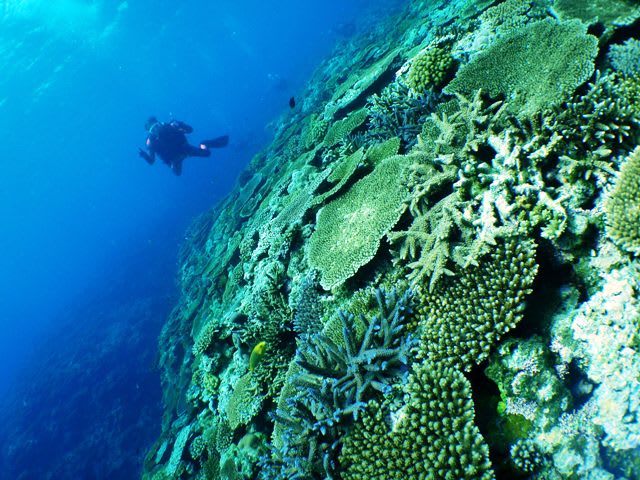 ここのサンゴも元気いっぱい(^o^)今日は比較的透明度も良く