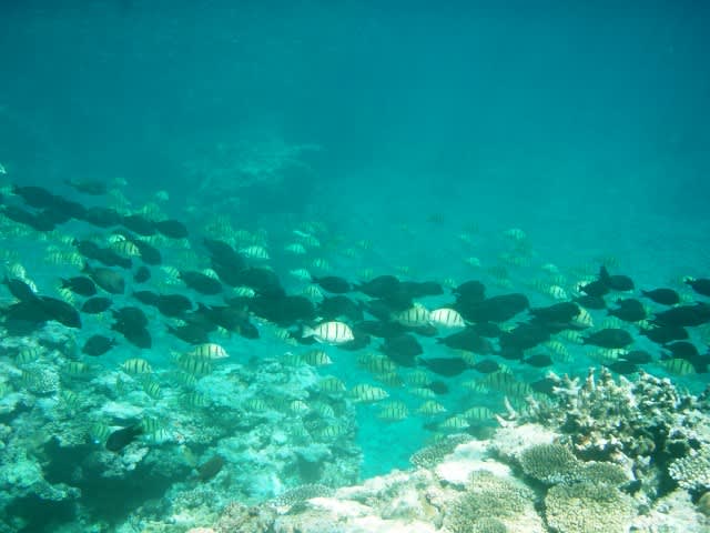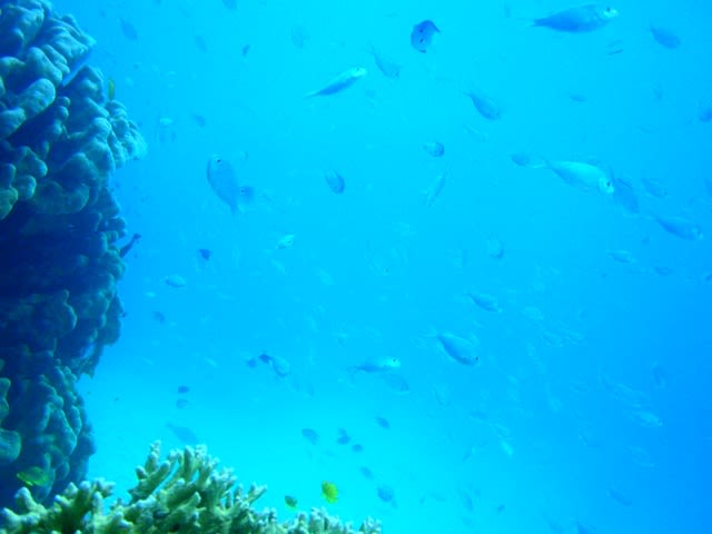 ちょい濁ってました・・・・けど、珊瑚と地形を逃げて行きませんので癒されて