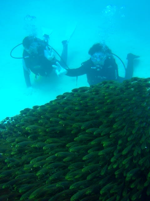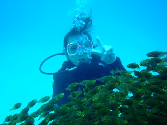 水中ではキンメモドキの群れに包み込まれそうになったり