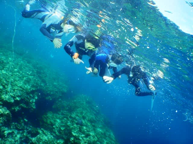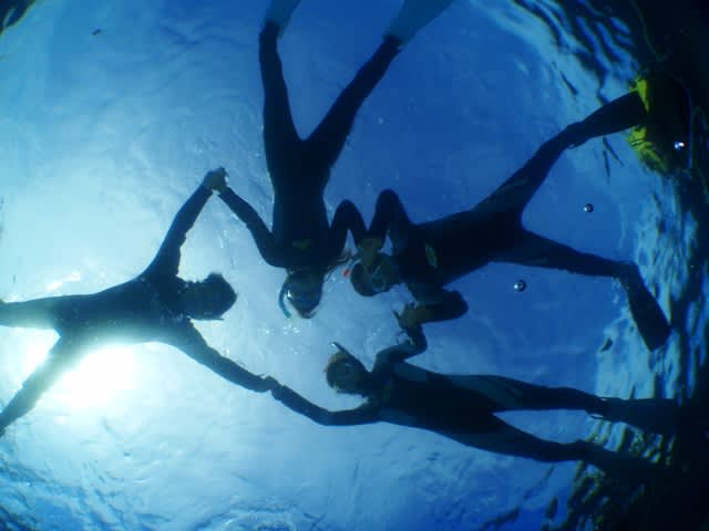 ダイビングチームとスノーケルで探そーチームに分かれて