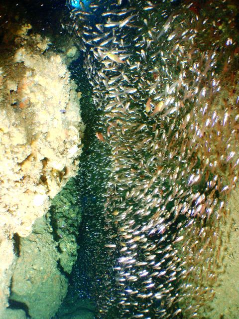 穴の中に群れている、キンメモドキなどは圧巻です(^_-)