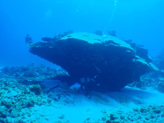 白い砂地があり、不思議な形をした大きなサンゴがあり透明度が