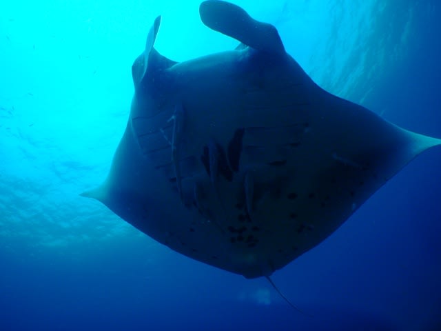 水底に着いて5分もしないうちに3枚のマンタと遭遇!!
