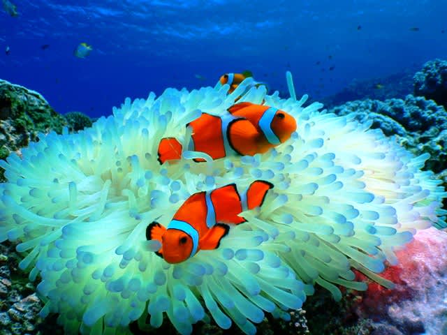可愛らしいクマノミに、緊張もすっかりほぐれ、