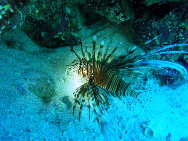 でも、大きなハマサンゴの下にはネッタイミノカサゴのペアが居ましたよ)^o^(
