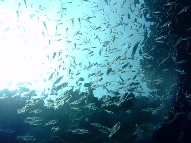 ドロップ沿いでは、グルクンの群れ・群れ・群れ(2回目)!青と黄色が