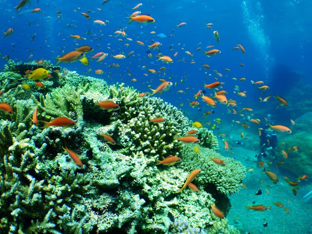 キンギョハナダイとアカネハナゴイがサンゴの上に群れ群れでキレイでしたね(^^♪