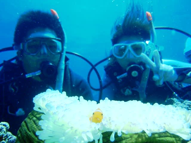 そして、休憩をはさんでは穏やかな名蔵湾に船をとめて潜ってきましたー↓↓