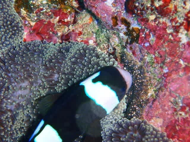 水中を移動していくと、まずハマクマノミが出迎えてくれました(^_-)-☆