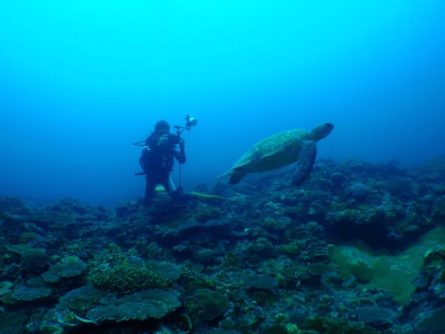 カメ探しで沖に泳いで行くと、居ました(●^o^●)