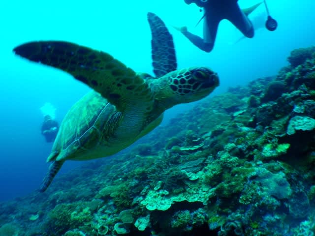 けれども、ウミガメの逃げた方からさらに大きなウミガメが!!