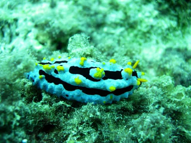 水中ではカラフルなウミウシやたくさんのキンギョハナダイ