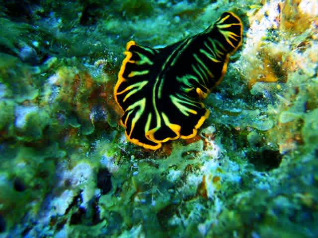 でもでもーツノキイボウミウシやサイケデリックな模様のヒラムシに
