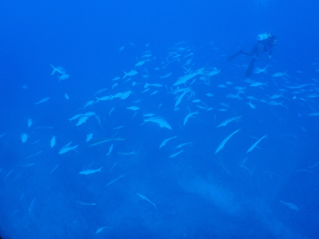 ポイントまでの移動中に社長さんのゲストが、イタチザメは見たくないけど、メジロ