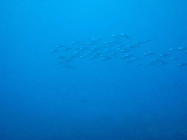 気持ち良い青い海で泳いでいると、ノコギリダイの群れを発見ですっ(^o^)