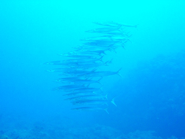 でもでーも、ウミガメゲットンです!!からのーカマスの群れも