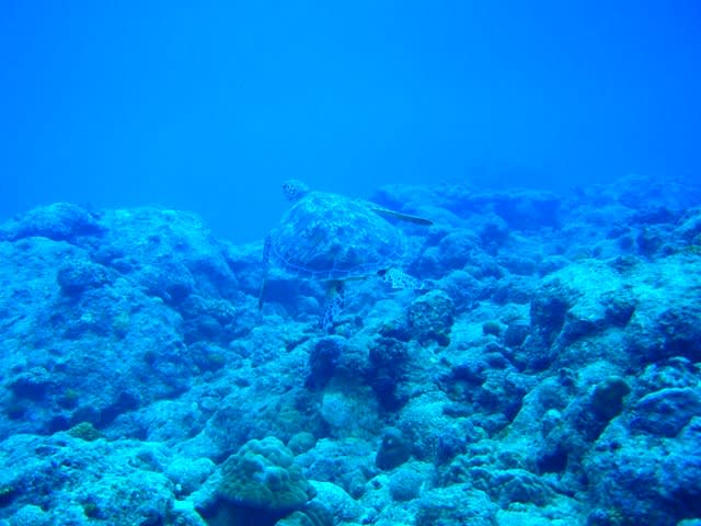 みんなでウミガメを求めてサンゴの海を泳いだのですが