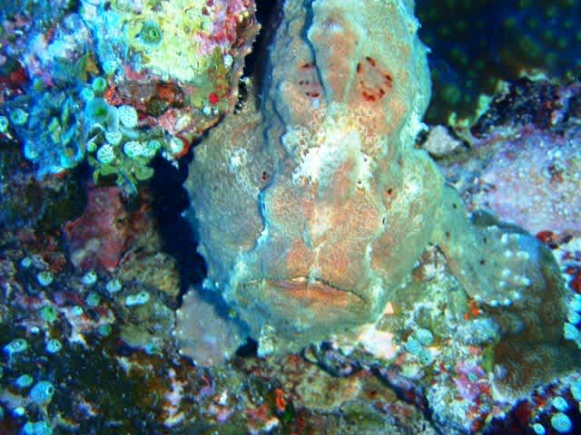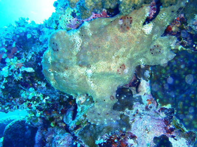 ターゲットのカメさんはソフトコーラルの上でお昼寝中で
