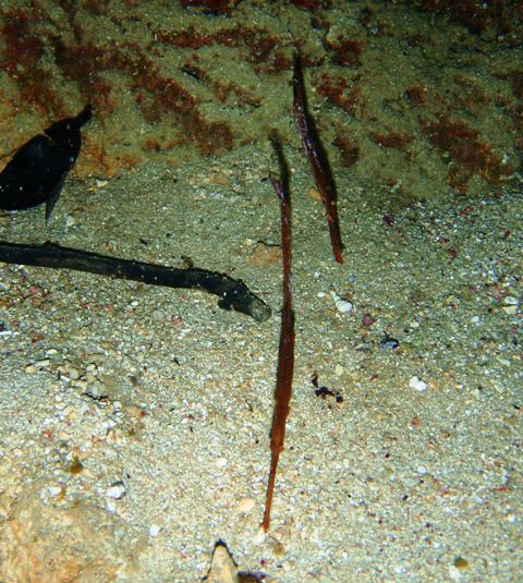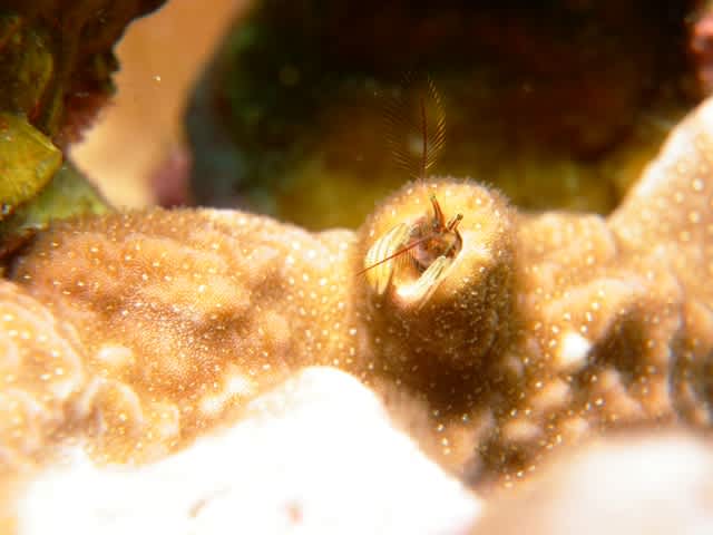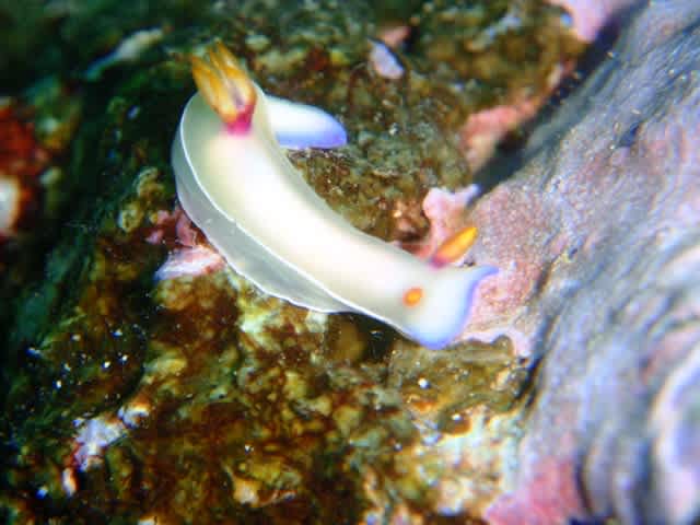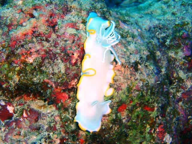 穴の中は水温低くてさむさむでしたが、カミソリウオやキンチャクガニ、ウミウシなど、