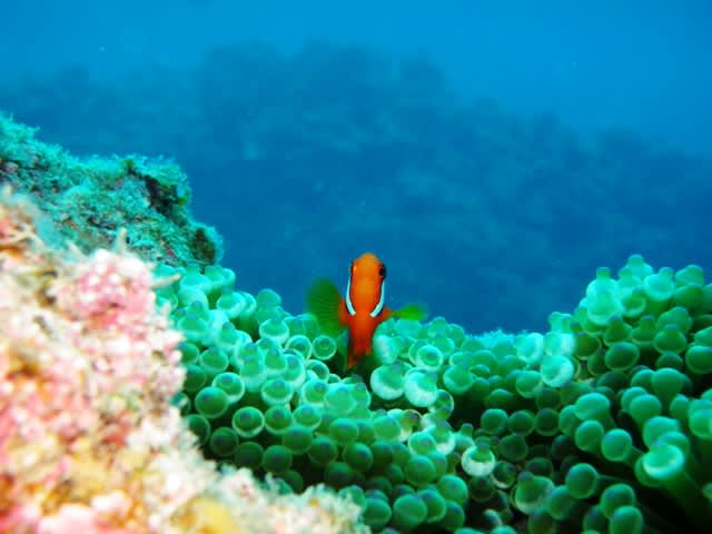 潜降に苦戦することなく、クマノミと写真を撮ったり