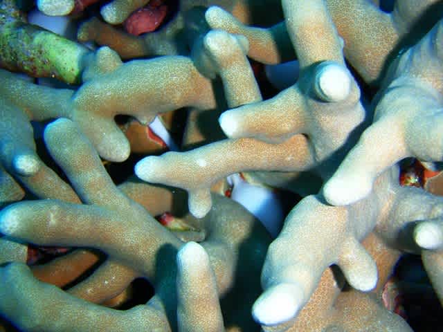 サンゴの中をのぞくと、コブシメの卵発見!