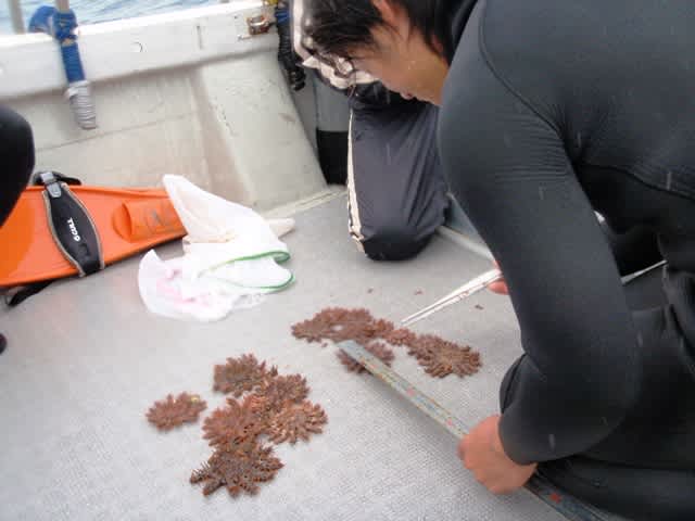 回収したオニヒトデは計測をして、データをとりましたよ(*^^)v