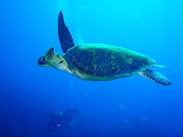 まだうねりがあって穏やかではないので、御神崎でカメに会って来ましたよ(^^ゞ