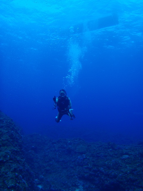 今度は、船を走らせてマンタ郎の居る近くで海に飛び込んできました(^^ゞ