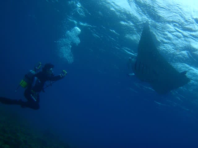 移動途中に水面マンタを目撃しましたが、水中では会えず(-_-;)