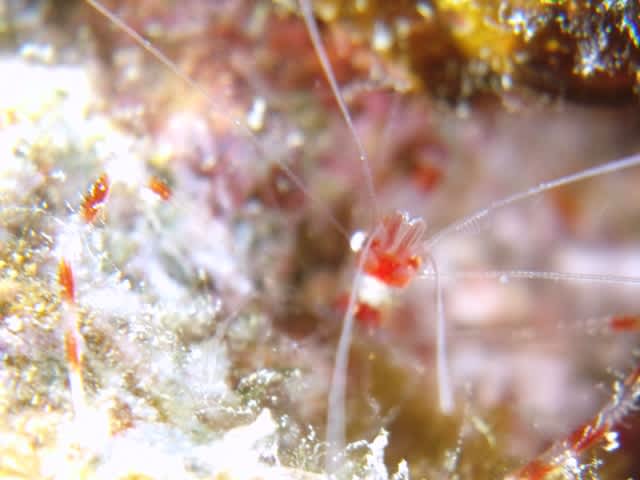 ドロップ沿いで隙間を覗きこんで甲殻類を探してみました、そしたらオトヒメエビの