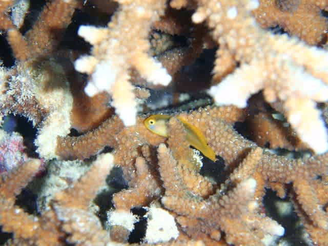 枝珊瑚の中には体を真っ赤にして寝てるグルクンや昼間は珊瑚の上でちょこちょこ
