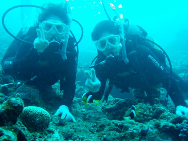 海の中では、クマノミと写真を撮ったり、ウミウシを見たり、マンタを探して水中を