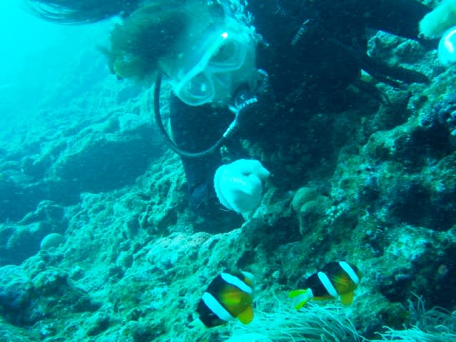 でもでも、クマノミと写真を撮ったり、クマノミの卵を覗いたり
