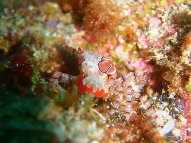 来ました(゜▽゜=)ノ彡☆ギャハハ!! 最近のキンチャクガニはお腹に赤い卵を