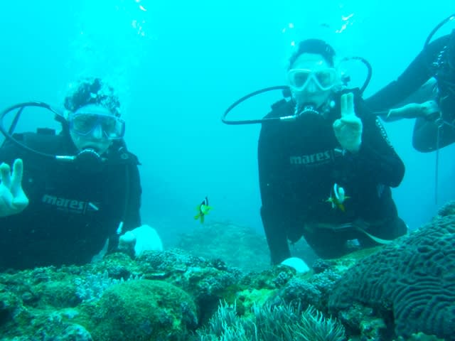 口呼吸に慣れた後はダイビングの説明を聞いて、いざ水中へ(*^_^*)