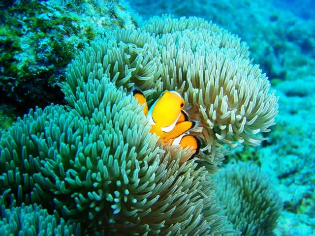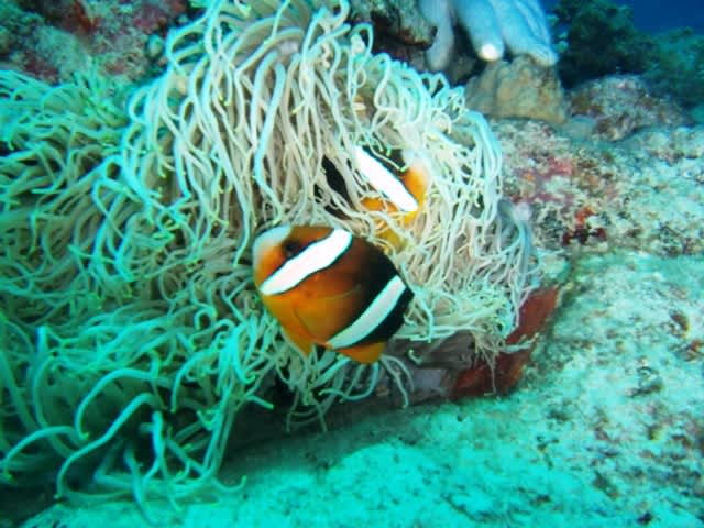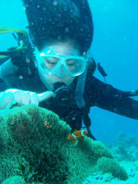 ハマクマノミに威嚇されて、指を甘噛みされたり、水中をまったり泳いだり