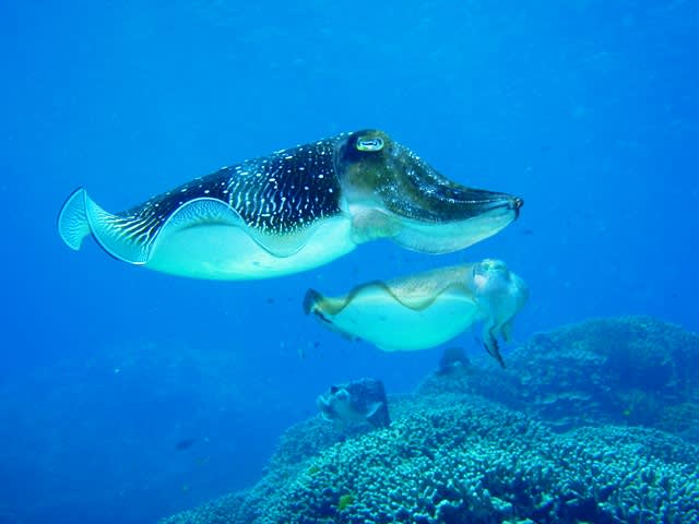 ここのコブシメは、まだまだ元気!!がんがんメスは産卵、オスはバトルを
